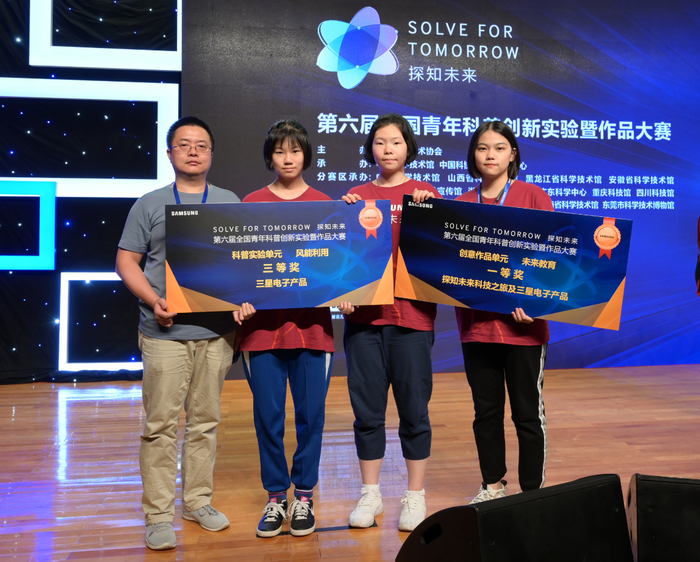 参加“生物环境(中学组)”的代表队是来自广州市海珠外国语实验中学的余文韬、刘雨青、翁玉玲,他们的作品“稻心”获得了二等奖;参加“生物环境(大学组)”的代表队是来自广东第二师范学院的袁敏璇、林春晓、何诗婷,她们的作品“和平之鸽”获得了三等奖;参加“风能利用”命题的代表队是来自广州培正中学的周欣然、李蔚然、梁霄,她们的作品获得了三等奖;参加“智能控制(大学组)”的代表队是来自广东工业大学的钟嘉峰、廖铭宇、叶泳蓓,他们设计的“基于骨骼识别的仿生机械臂”获得了优秀奖;参加“智能控制(中学组)”的代表队是来自茂名市第十六中学李润东、陈信宇,他们设计的“智能溺水防控系统”获得了优秀奖。