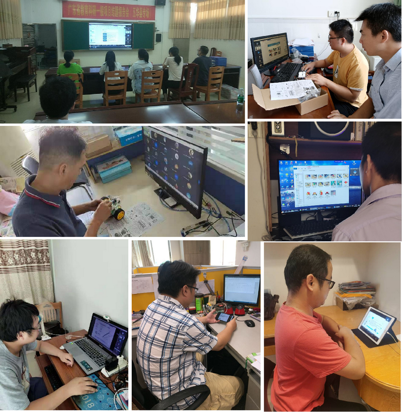 广东省“馆校结合”创意机器人系列创新实践活动自2011年启动以来,已在全省直接间接普及中小学师生超过50万人次,直接培训教师超过30000人次,取得显著的社会效益,积极推动了全省中小学校和科普场馆教育活动的有效衔接。今年,在疫情防控常态化下,系列创意机器人教师培训扎实有序、亮点纷呈:一是紧跟疫情形势,不断优化培训方案。今年以来,新冠疫情防控形势复杂多变,主办方根据防控要求,不断调整培训方案,适应疫情发展态势:采用“线上学习-线上答疑-线上验收学习成果”的方式开展进校园教师培训;采用“主场培训骨干,骨干培训分场教师”的方式开展预赛教师培训;采用“线上学习-线上答疑-线下答疑”的方式,开展省赛教师培训,保证培训质量。二是紧跟社会热点,确定培训主题。省赛教师培训以“AI陪伴机器人”为主题,带动全省科技教师进入人工智能学习,掌握人工智能核心理念、技术要点和应用思维。三是不同活动使用不同主题套件。广东科学中心自主研发了系列普适型和进阶型机器人套件,不同的活动,使用难易度不同的套件。从进校园培训的鼹鼠机器人到预赛培训的声控四足机器人,再到省赛培训的“AI陪伴机器人”,难度逐渐增加,循序渐进,极大地拓宽了活动受众面。四是助力乡村振兴,向欠发达地区倾斜。为促使全省科普教育均衡发展,创意机器人系列活动向粤东西北地区倾斜,例如:参加进校园培训的130所学校中有100所学校是粤东西北和广州市北部地区学校;参加预赛培训的10个地市(区)中有6个是粤东西北和广州市北部地区。