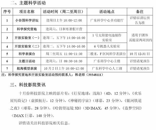 广东科学中心10月份教育活动预告,欢迎各位公众在游览前下载。
