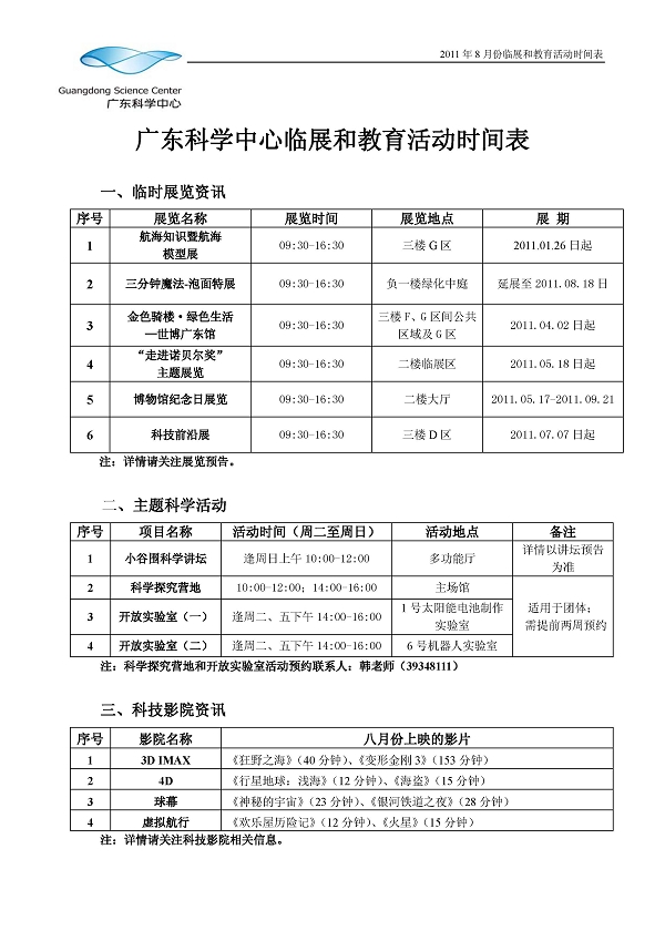 广东科学中心8月份临展与教育活动预告,欢迎各位公众在游览前下载。