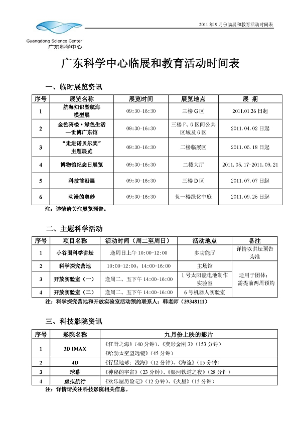 广东科学中心9月份临展与教育活动预告,欢迎各位公众在游览前下载。