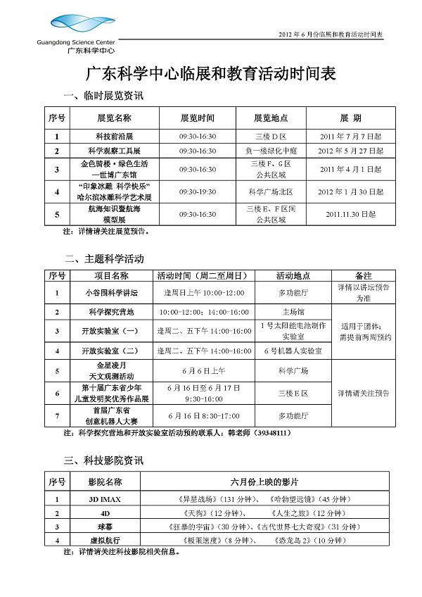 广东科学中心6月份临展和教育活动预告