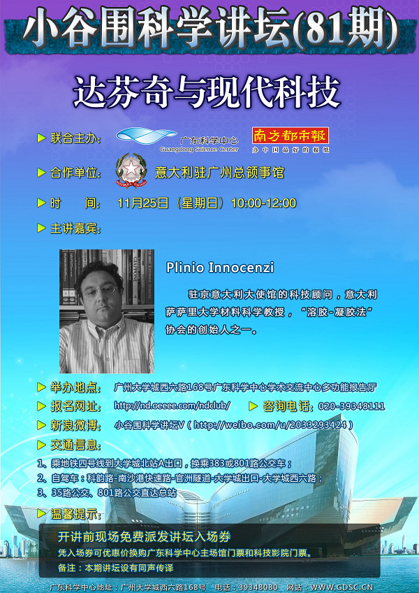 优惠信息:开讲前现场免费派发讲坛入场券,凭入场券可优惠价换购广东科学中心主场馆门票和科技影院门票。