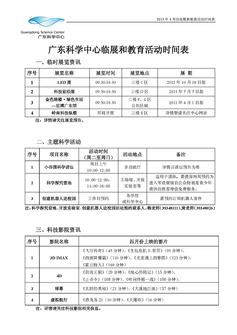 广东科学中心2013年4月份临展与教育活动预告,欢迎各位公众在游览前下载。