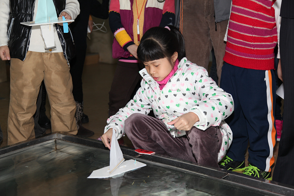 1. 帆船制作横渡赛:利用KT板、A4纸、竹签等材料制作成一艘小帆船,借助横向风力抵达对岸,得分为6分及以上的观众可获赠主场馆门票半价优惠兑换券1张和科技电影优惠兑换券1张。帆船制作收取材料成本费用5元/套。(本日活动已被团体预约,不对散客开放。)