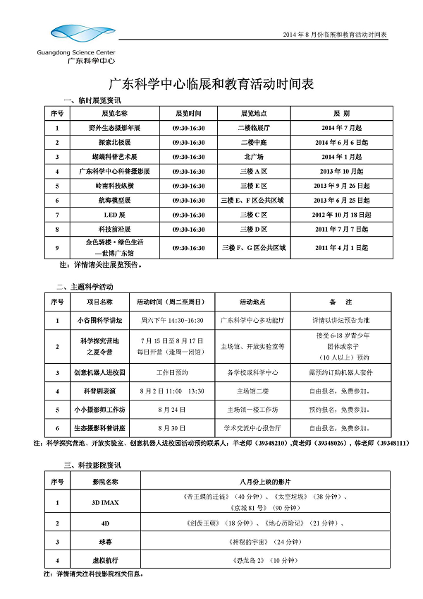 广东科学中心8月份临展和教育活动预告