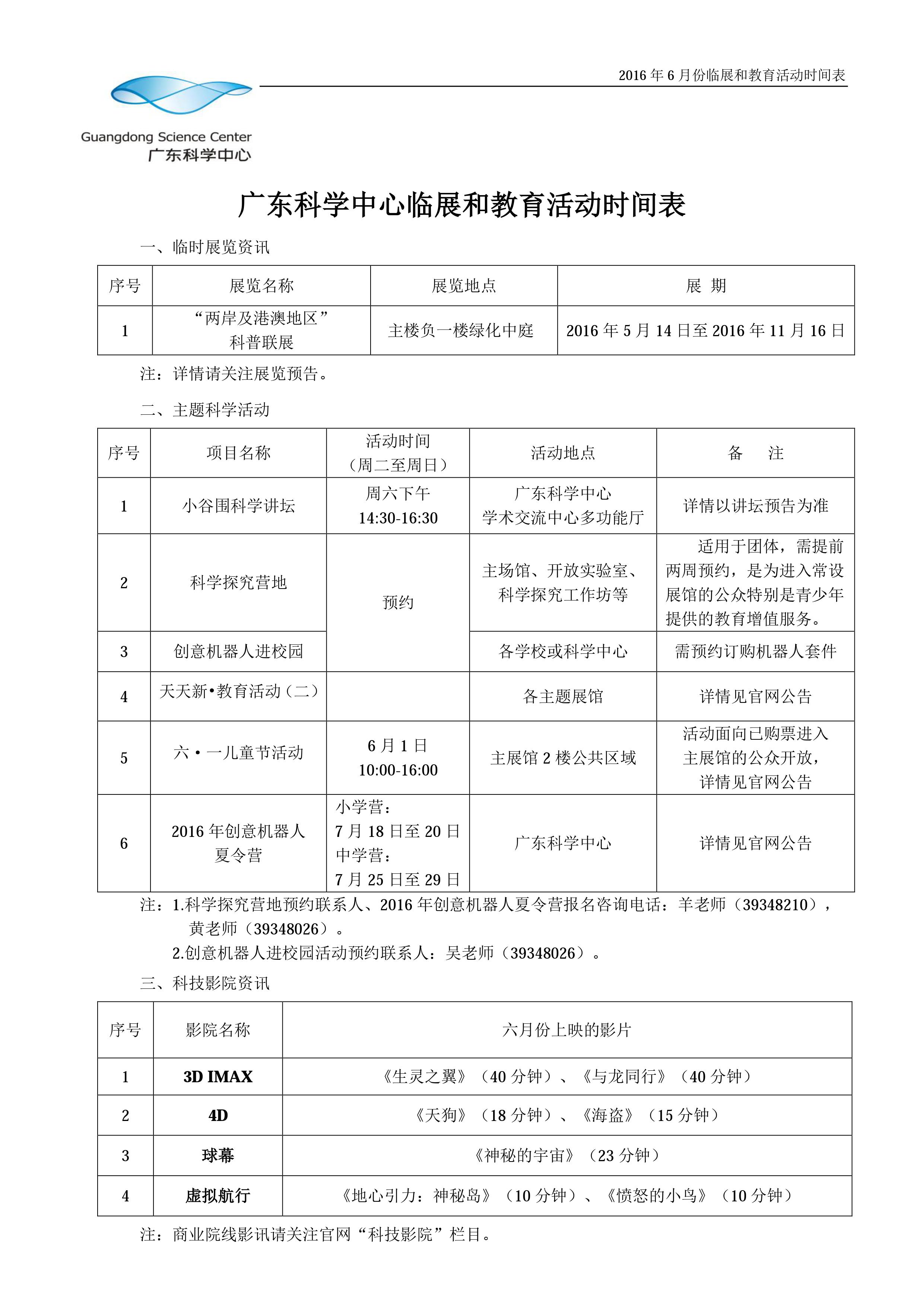 广东科学中心6月份临展和教育活动时间表