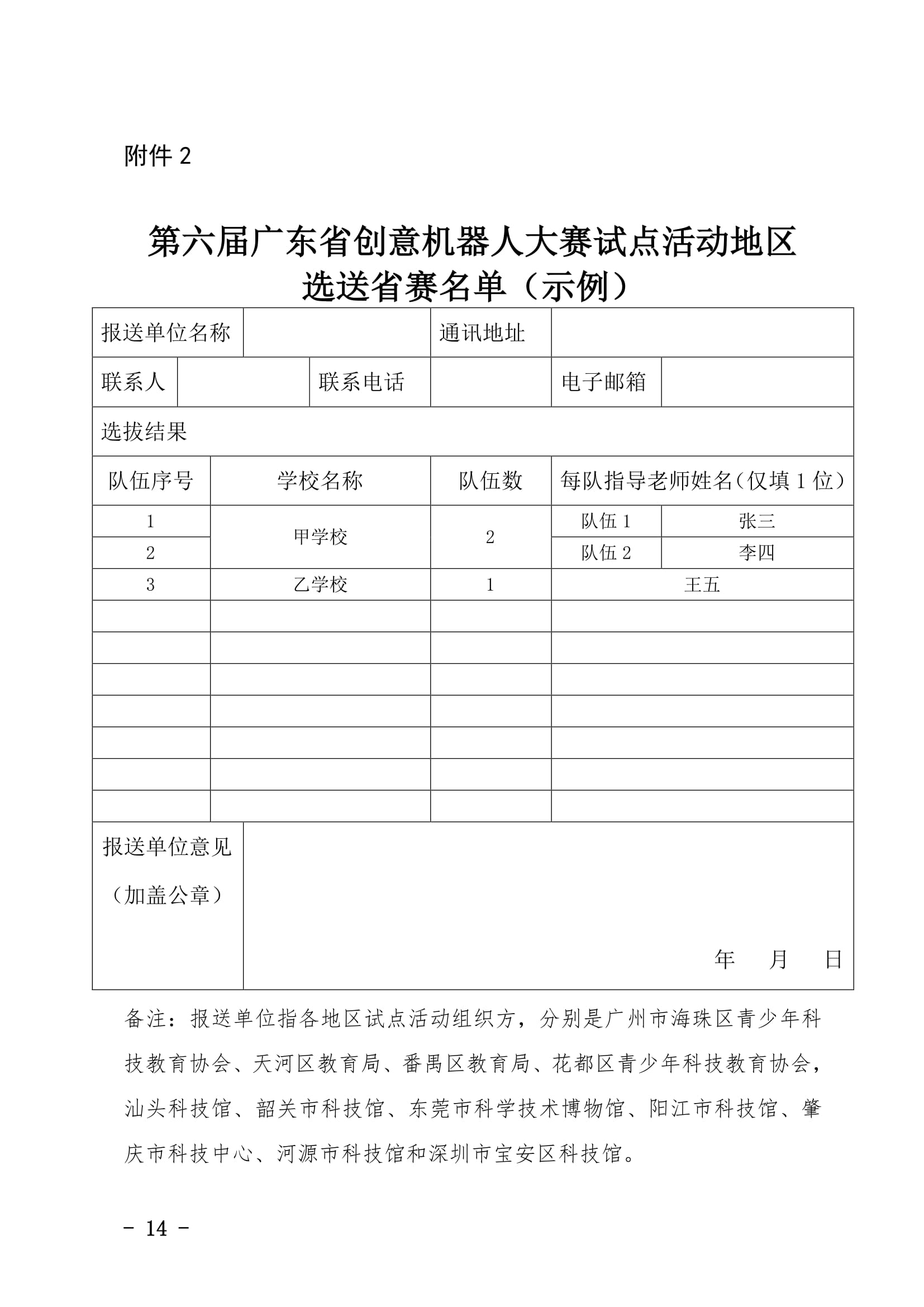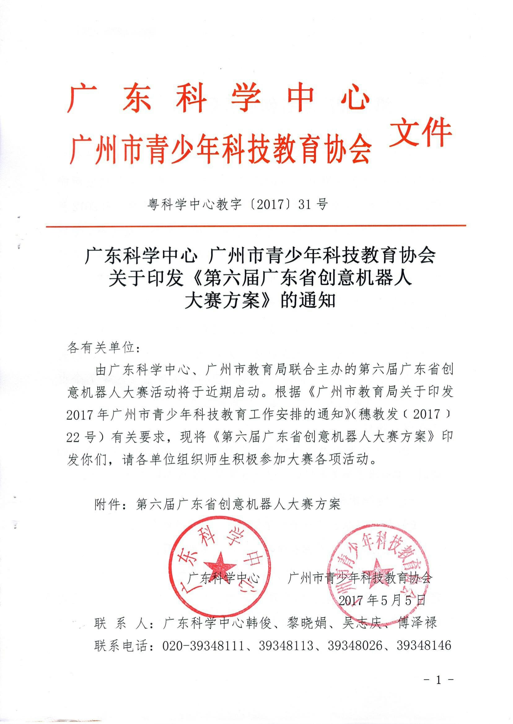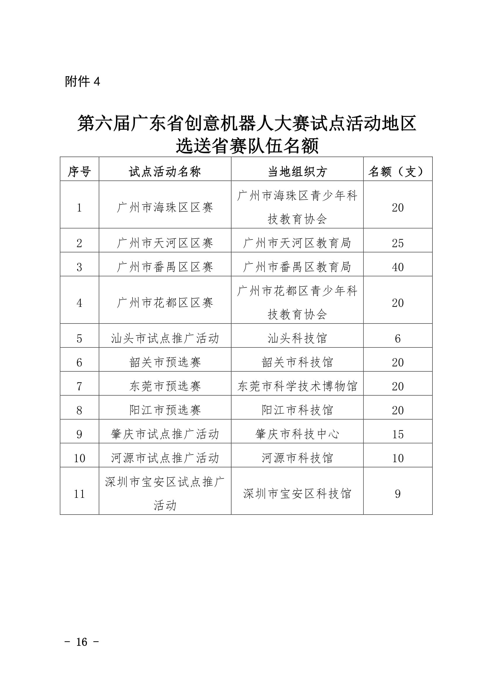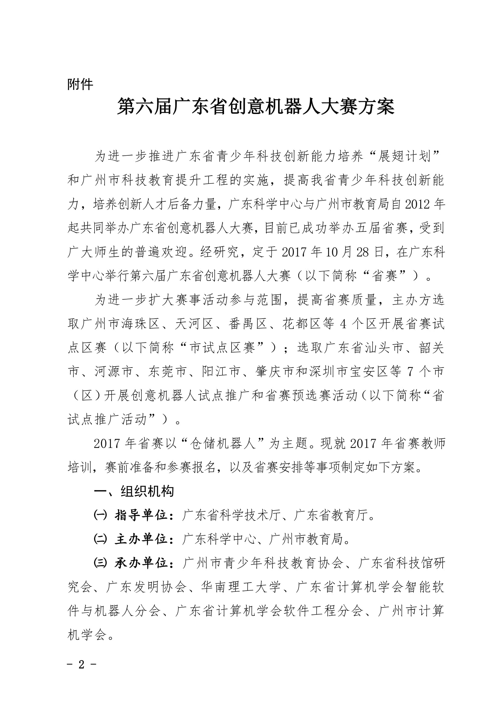 广东科学中心 广州市青少年科技教育协会关于印发《第六届广东省创意机器人大赛方案》的通知