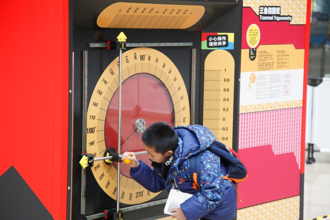 在“数学魔力”展现场, 观众可探索日常生活现象背后隐藏的数学概念和公式,如在“数据收集”展项中,游客在屏幕上输入自己的头发颜色、年龄甚至宠物偏好等信息,就可探索统计学原理,然后利用反应速度测定器开展测试,观察自己与那些跟自己类似或不同的人的差异;在“四面体”展项,给你两块相同的积木,拼成一个三角形底座的金字塔,其实并不像看起来那么容易!通过动手操作,你会明白一些冷冻饮料包装所用的“利乐包”,其实隐藏着四面体的奥妙。在展览中,你还可以探索关于宇宙的根本问题,理解两点之间的最快路程并非一条直线,用数学解决迷宫难题。
