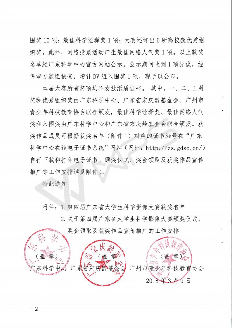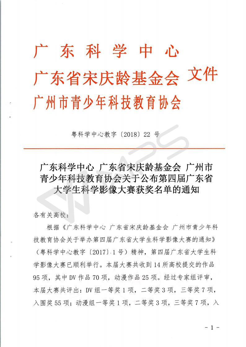 广东科学中心广东省宋庆龄基金会广州市青少年科技教育协会关于公布第四届广东省大学生科学影像大赛获奖名单的通知