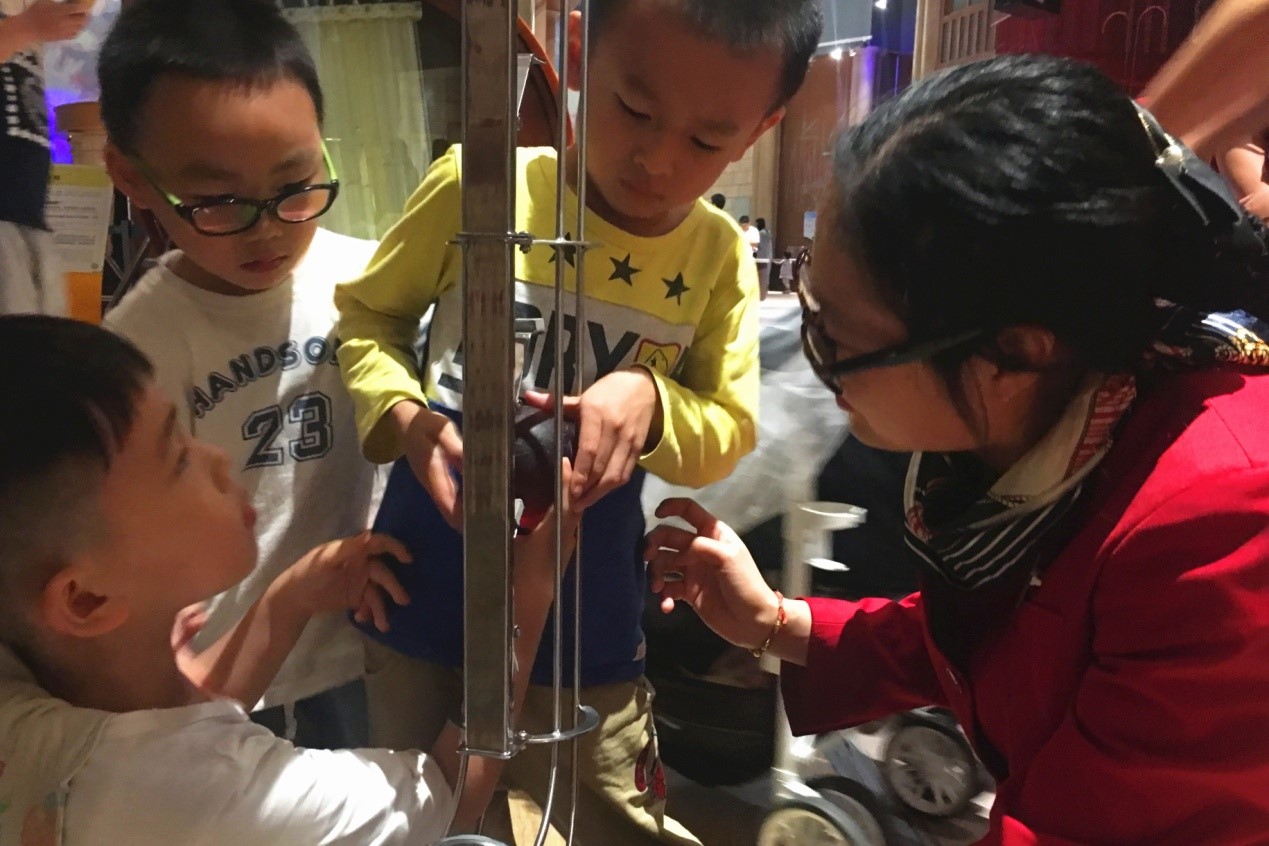 众多家长带这孩子在"实验与发现"馆体验