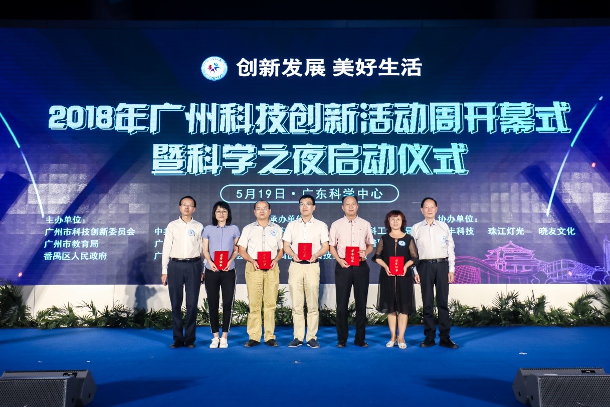 开幕式上还颁发了2017年广州科普创新奖及2018年广州市中小学生科普知识竞赛奖。广东科学中心的“两岸及港澳地区科普交流系列活动”项目荣获广州科普创新奖的“科普成果奖”一等奖。