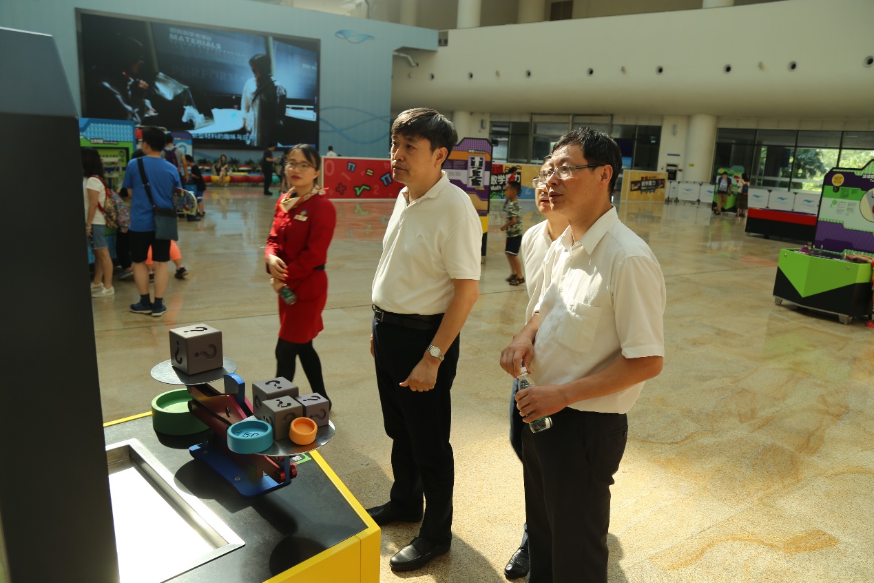 朱才毅副书记向来宾详细介绍了广东科学中心的建设运营、科普教育活动,以及举办市中小学生科普知识竞赛等情况,并陪同参观了实验与发现、儿童天地、数学魔力展等展馆。吕玉刚司长对科学中心充分挖掘地域文化优势,拓宽科普教育工作途径,创新科普教育工作载体,繁荣我国科普教育建设,积极推进科普教育工作走出去给予了充分肯定和高度评价。他表示,科学中心是全国中小学生研学实践教育基地的典范,望科学中心能进一步探索路子,为全国提供更多经验。