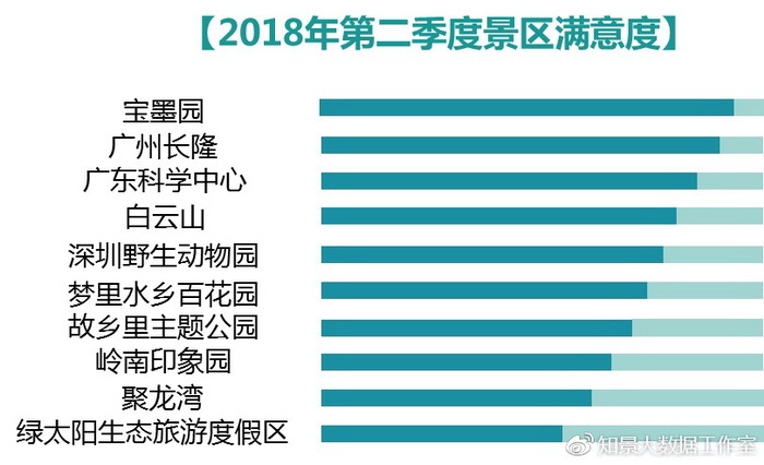 这份排名是广东省景区行业协会、中山大学城市化研究院、知景大数据工作室(技术支持)联合推出的《广东省旅游景区游客满意度大数据调查报告(2018 年第二季度)》中最亮眼的内容。