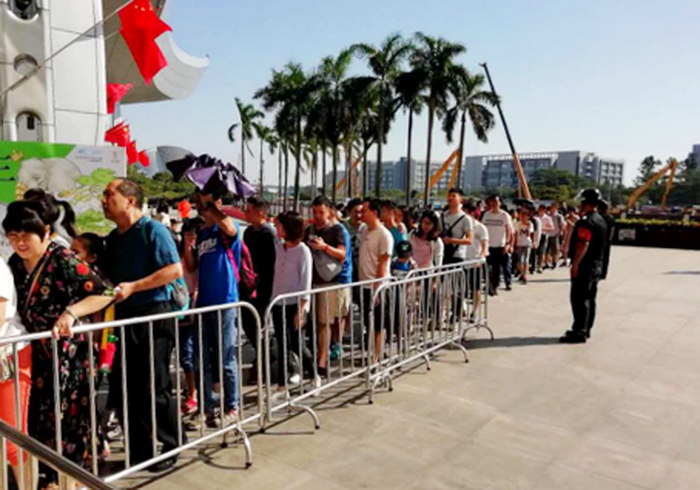 虽已是秋分时节,但“秋老虎”的威力还是不减盛夏,午后依旧阳光猛烈。馆外的安保人员,顶着烈日,以饱满的热情,驻守在各个车流入口,手举各类指引牌,人工指挥南来北往的车辆,疏导车流,减少观众排队等候时间,还贴心地在主出入口设立“便民服务点”,为游客提供咨询、饮用水等便民服务。馆内的保安,在细心做好安全检查同时,不时在各大展馆及周边巡逻,排除安全隐患,维护参观秩序,为观众的安心游玩保驾护航。