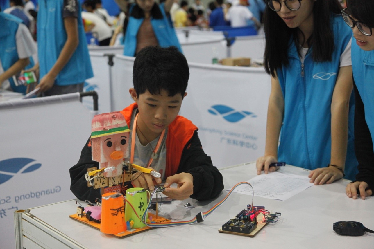 2018年10月27-28日,第七届广东省创意机器人大赛在广东科学中心成功举行,全省一千多名中小学生现场比拼演奏机器人创作,活动现场宛若一场盛大的机器人音乐演奏会。在赛事平台带动下,2018年超过20000人次的中小学师生参与了相关活动。