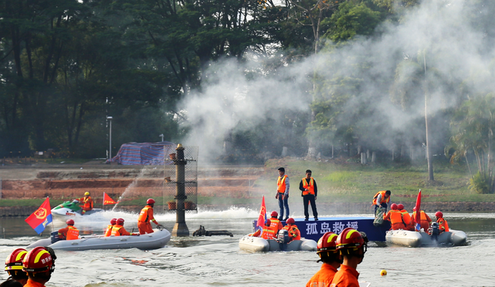 消防演练在科学中心亲水平台举行