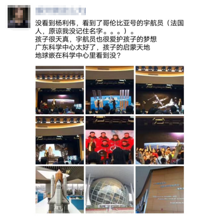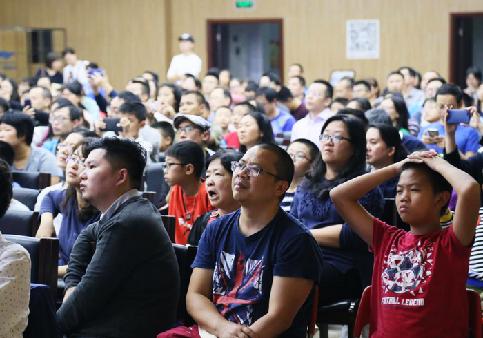 当天下午,法维耶博士做客第178期小谷围科学讲坛,向到场的约600人的亲子家庭作“太空经验分享与星空探索的未来”演讲。在近2小时的科普报告中,法维耶博士用大量精美的宇航和太空照片,通俗有趣地讲述了他的太空探索经历,并留出更多的时间与现场的孩子们互动,回答孩子们关于各种“稀奇古怪”的航天问题。法维耶博士表示中国孩子们的航天知识储备让他感到惊讶,提问非常精准和专业,并勉励孩子们努力学习科学知识长大从事相关工作。法维耶博士的讲座异常精彩,赢得现场观众的阵阵掌声,气氛十分热烈。讲座结束后,家长孩子们纷纷找专家签字,合影留念。