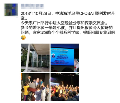 2018年10月29日,中法海洋卫星CFOSAT(China France Oceanography SATellite)顺利发射升空。作为航天领域和空间海洋学首个世界级的科学研究合作项目,本次中法合作将为我们带来更精准的海洋活动数据,这也是一个新的中法合作里程碑。为庆祝中法海洋卫星CFOSAT发射成功,广东科学中心、南方都市报特别与法国驻广州总领事馆和法国文化中心合作开展了中法航天科普系列活动,包括邀请法国宇航员法维耶博士做客小谷围科学讲坛,由法国驻华大使馆科技处支持的法国太空探索纪录片展映等。此外,同行的学者伊曼纽尔·杜弗兰斯(Emmanuel DUFRASNES)先生也带着他的月球村建筑项目来到广州与我国的航天航空专家们探讨更为广阔的中法科技合作前景,为航天和人类发展做出贡献。