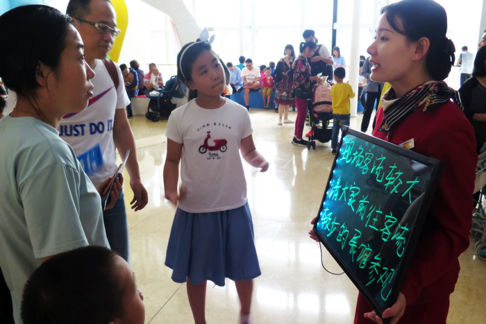 假日期间,科学中心展馆门还没开,游客便已蜂拥而至,门前广场排起了长龙,高峰时排队的长龙还打几个"蛇饼",偌大的停车场早已停满参观车辆,晚来的车子只能停到1公路里外。在前来参观的游客中,大部分都是家庭式“亲子游”,家长们带着孩子,就是冲着“世界最大的恐龙”展而来。从广东江门来的游客赵先生表示,7岁的儿子特别喜欢恐龙,得知科学中心从美国引进的恐龙主题科普展开放,就迫不及待带儿子专程驱车2个多小时来抢先体验。
