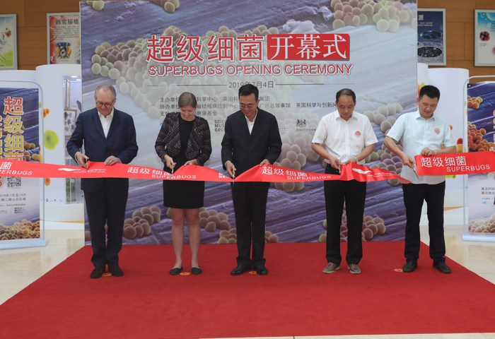 2019年7月4日,《超级细菌:为我们的生命而战》中国巡展首站在广东科学中心正式开幕,英国驻广州总领事馆副总领事Liberty Timewell,英国科学博物馆集团副总监Jonathan Newby,广东科学中心主任卢金贵,浙江省科技馆馆长季良纲,武汉科技馆副馆长吴建国等嘉宾领导共同为展览揭幕。