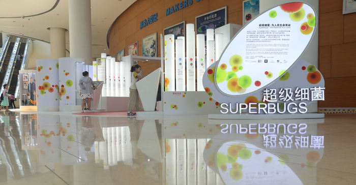 《超级细菌》中国巡展在英国原同名展览的基础上,结合中国本土的研究机构、大学和医院等提供的资源,对展览进行了调整和拓展,内容更加丰富,形式更加生动。特别是人物故事部分,结合中国本土医生、科学家、农民等6位与“抗生素耐药性”紧密相关的人物角色,通过他们的故事和视角,带领公众深入认识超级细菌,了解抗生素的正确使用方法,以及社会各个领域如何联合行动起来应对抗生素耐药性这一危机。展览从7月4日至10月31日在广东科学中心首展,并将在未来两年内陆续在重庆科技馆、武汉科技馆、浙江省科技馆等科技馆巡回展出,预计接待近150多万人次参观。