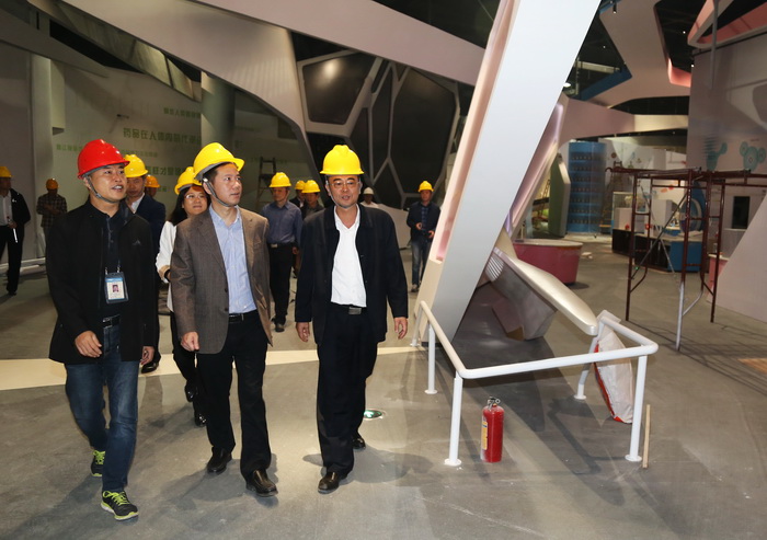 郑海涛副厅长一行检查了科学中心公交站场、室外绿化带、主楼屋面和排烟窗施工现场、以及食品药品科普体验馆布展现场,听取了华隧建设公司、中铁二局等施工单位负责人关于安全生产工作详细汇报。