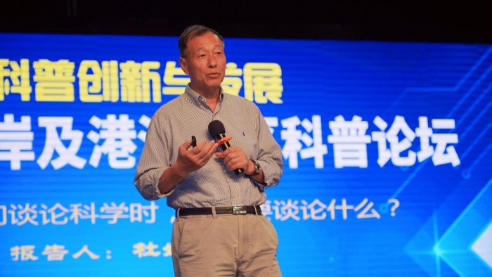 加拿大工程院院士、原香港中文大学精密工程研究所所长杜如虚院士以“当我们谈论科学时,我们要谈论什么”为题,结合自身实践分享科学家如何给公众做科普。他认为“讲”科学,不仅仅是传播科学知识,还要将科学的源起、科学的思想、科学的方法融入到新的形式中,让科学的真知照亮我们的未来。