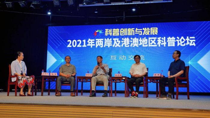 5月23日,2021年广州科技创新活动周重点活动——两岸及港澳地区科普论坛在广东科学中心举行。来自台湾、香港、澳门、北京和广州的五位科普专家聚首,共同探讨“科普创新之路”,分析新时代科学传播现状及趋势,分享和交流各地不同特色的科普理念、经验和做法。来自科普场所、科研单位的科普工作者和社会科普爱好者数百名观众现场听讲。
