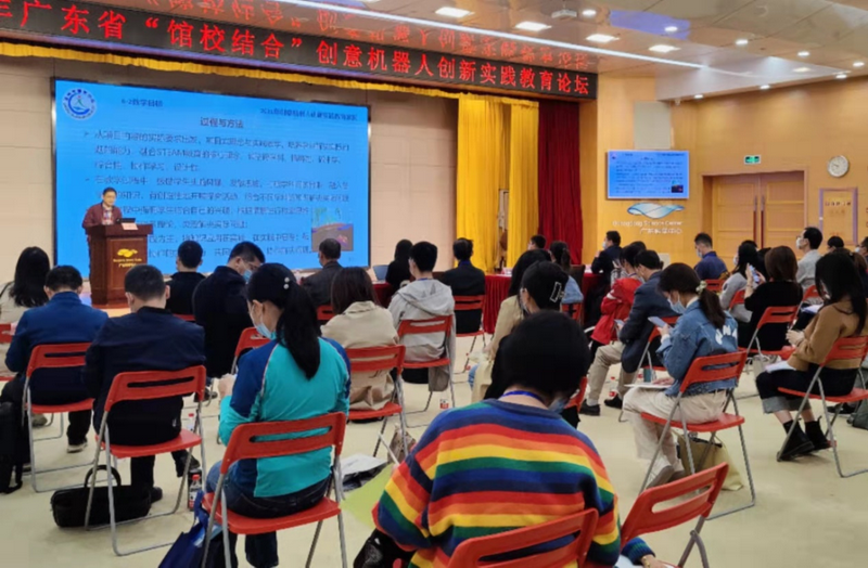 此外,为进一步增进教师之间的交流,更大范围推广STEAM教育在创意机器人科技创新实践中的应用,线下角逐同期,我中心还举办了2021年广东省“馆校结合”创意机器人创新实践教育论坛,邀请2021年广东省“馆校结合”创意机器人创新实践教育案例征集活动的一等奖获奖代表作报告,并与大赛带队老师面对面交流。广州市天河区教育研究院科学教研员雷晓晖担任论坛专家主持人并作点评,论坛干货满满,与会老师一致表示收获颇丰,受益匪浅。