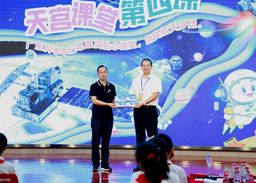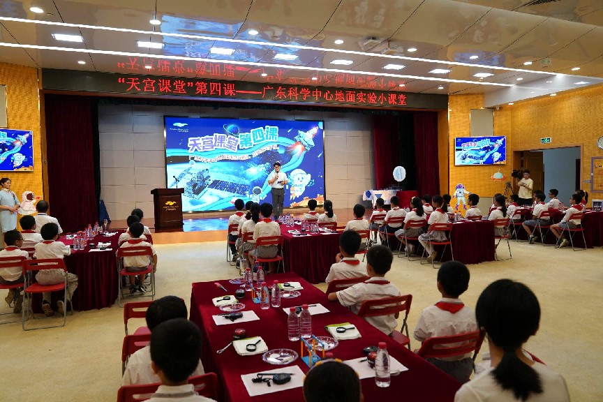 至此,广东科学中心已连续3年同步设置“天宫课堂”地面实验小课堂,开发了《火星生存大挑战》《太空奥秘知多D》《地面PK太空之重力》《地面PK太空之泡泡》等研学课程,旨在科普航天知识、传播航天精神,更在孩子们心中种下“航天梦”的种子。