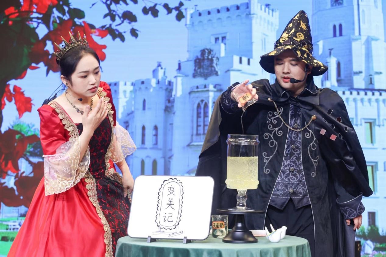 广东科学中心团队演绎的科学实验小品《变美记》,通过对魔镜与皇后经典故事的演绎和拓展,从保湿、卸妆、防晒、妆容等方面,探索用科学方法打造美丽妆颜的方法,解开人们对化妆品的误解,并倡导人们树立正确的审美观,追求自然美、健康美。