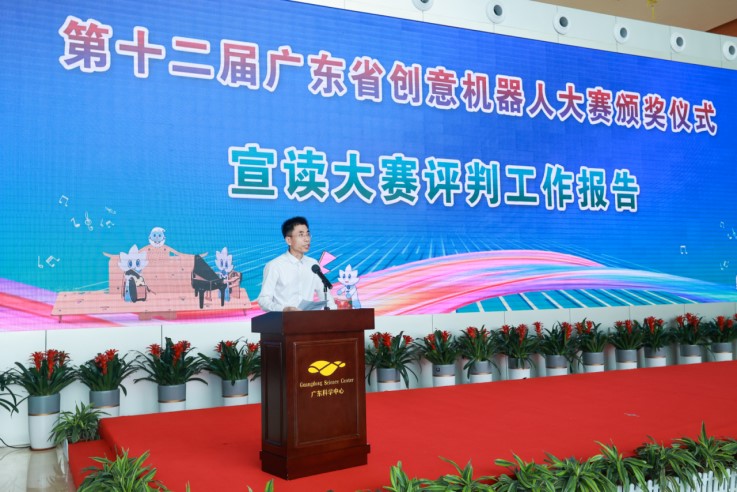 广东省科技馆研究会理事长周震寰出席颁奖仪式并致辞。他指出,创意机器人大赛能取得如此成效,主要得益于坚持把开展竞赛活动与服务经济社会发展紧密结合起来,着眼于创新驱动发展,围绕提升全民科学素质、助力乡村振兴和科技自立自强的目标来开展;坚持把科技创新与科学普及紧密结合起来,聚焦科技前沿和热点话题;坚持把培养“拔尖型”人才与“普适型”人才紧密结合起来,分级培养科技后备力量。