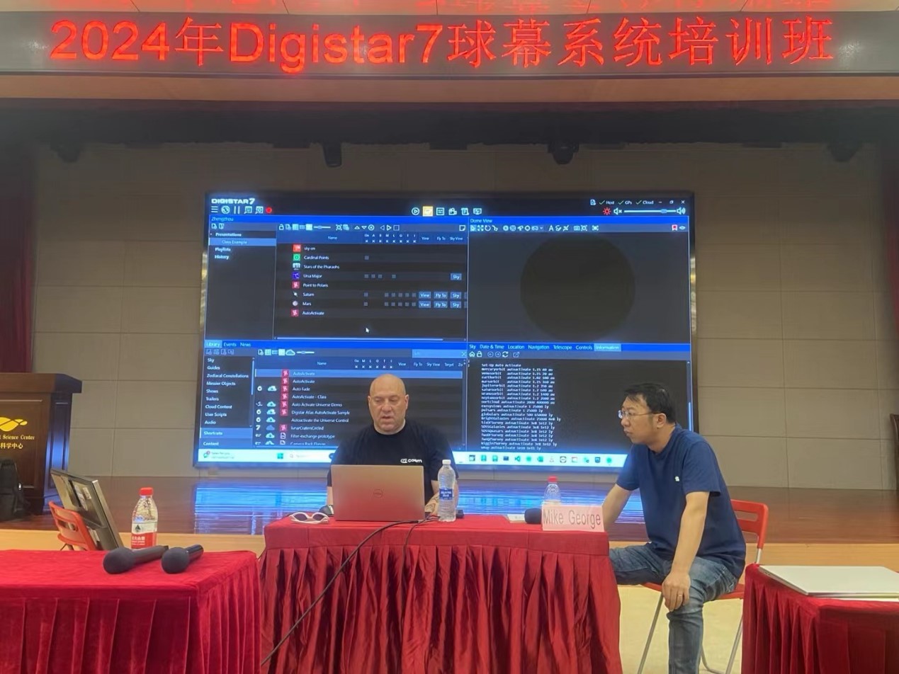 培训班邀请美国益世电脑公司球幕系统培训讲师Mike George担任主讲,授课主要涵盖Digistar7球幕系统的前沿技术、应用实践、脚本制作、视觉操控、云共享等内容。培训班还邀请苏州青少年科技馆展览教育部副主任朱巧根,就如何利用科技馆自身资源进行球幕影片摄制进行分享,并详尽讲解影片选题、拍摄设备和后期剪辑等过程细节。