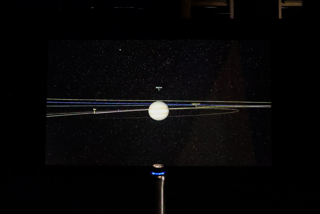 展览共展出20件作品,分别出自瑞士、法国、德国、美国、加拿大、俄罗斯和中国7个国家的13位(组)艺术家,带领观众在几小时内回溯138亿年波澜壮阔的宇宙变迁历程,从生命初诞时生物眼眸对微光的初次捕捉,到现代高精尖望远镜对浩瀚星河的深度凝视,开启跨越五亿年的“追光之旅”。其中《巡星雕塑》是由艺术家使用退役的斯隆数字巡天项目(SDSS)穿孔铝板创作出有趣的动态艺术装置,通过艺术创作,赋予它们新的生命,启发人们思考宇宙的运行原理;互动影像《动态宇宙》提供了一种沉浸式感官体验,以高达27个数量级的缩放功能,对宇宙进行高仿真模拟,展现宇宙可无尽探索的神秘特性。