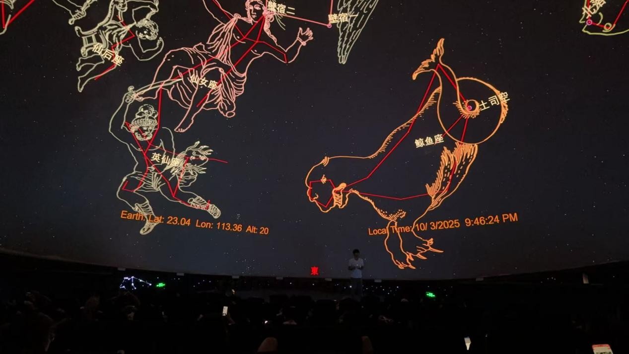 为满足观众需求,广东科学中心假期期间将科普剧场场次由平日79场增至86场,其中最新推出的科普剧《量子力学之旅之电子之问》》以其生动的演绎和严谨的科学内容,赢得了观众的阵阵掌声。巨幕影院推出的国内首部8K航天科普影片《筑梦天宫》以及球幕影院推出的《秋季星空秀》也成为假期中的“打卡”热点。观众在沉浸式观影中遨游天宫空间站,仰望秋季星空,感受科学与艺术的完美融合。
