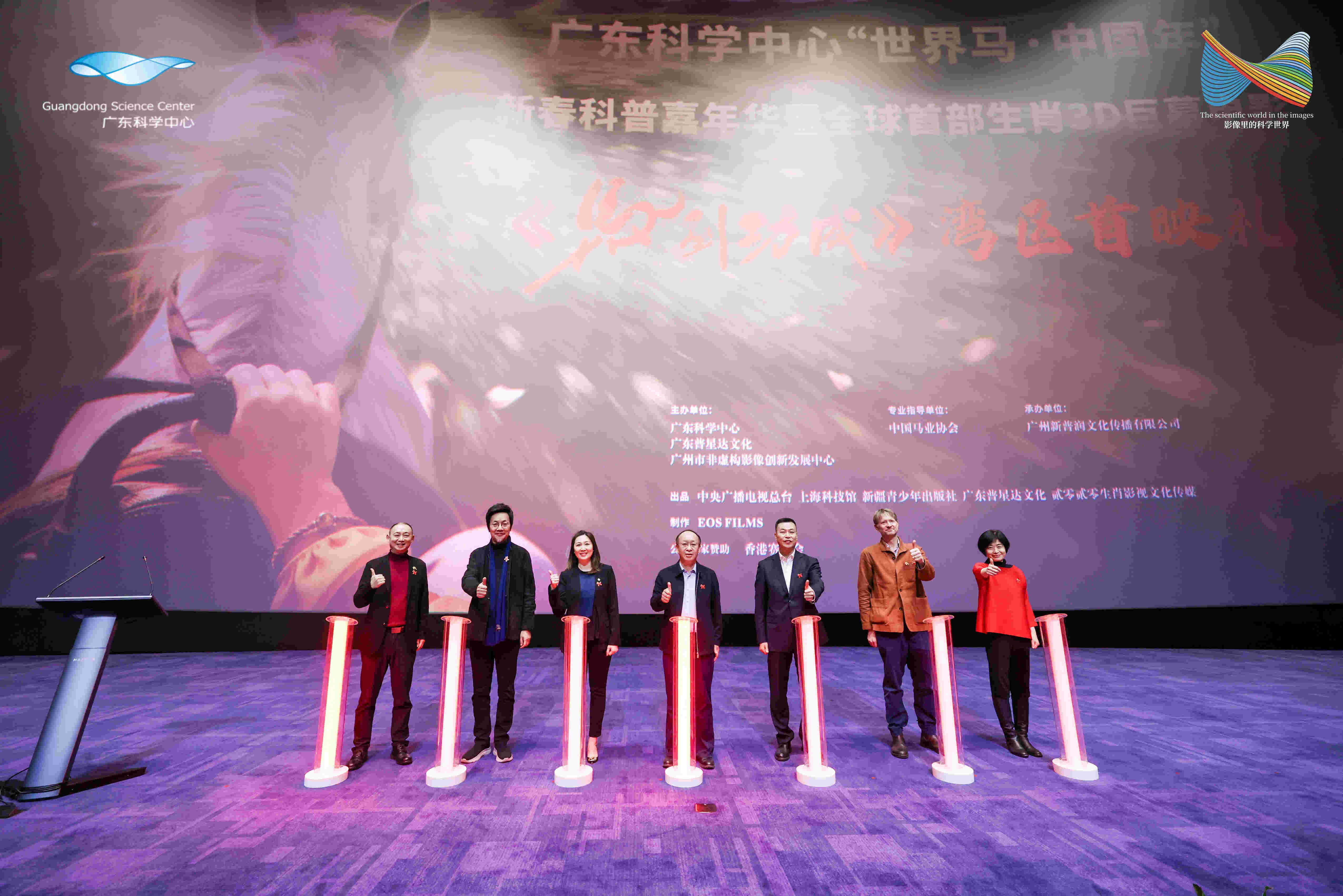 1月11日,全球首部生肖动物3D巨幕电影《马到功成》大湾区首映礼暨“世界马·中国年”新春科普嘉年华在广东科学中心成功举办。广东省广播电视局党组成员、副局长陈小锐,广东科学中心副主任邱银忠,香港赛马会内地事务部总经理丁雅勤,澳门资深天文馆及特效影院工程师黄嘉庆,深圳科学技术馆副馆长宋欠芽,佛山科技馆影视部部长林孝全,《马到功成》总导演马克•布朗罗、总制片人书云,广东普星达文化董事长陈刚,北京冬奥会吉祥物冰墩墩总设计师曹雪等嘉宾出席了本次活动。省市区相关部门、媒体、公众约500余人参与了本次活动。